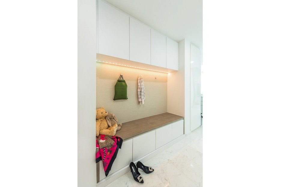 With our clients’ strong love for the colour white and a luxurious experience in their home, we have made their dream home come true! This is a smart home with google controlling their light and sound systems. The main feature and pride of this home would be the master bedroom area linking the open walk-in wardrobe and lush master bathroom! If you’re thinking of renovating your condominium, we can help you with your own condo interior design in Singapore!
