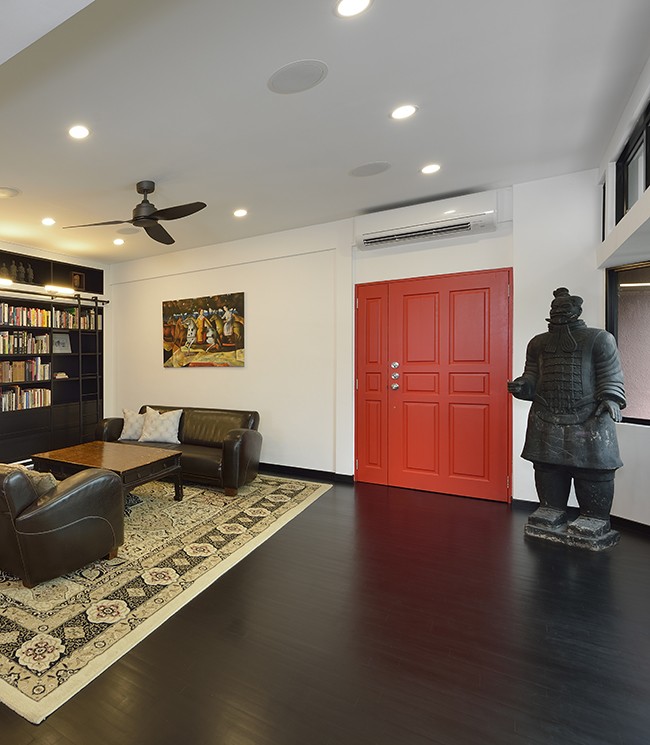 We were instructed to completely redesign and oversee renovation of this vast lateral condominium to create an inviting yet elegant home inspired by our clients’ love for the orient and books. We themed this home a Modern Rustic and Oriental Fusion with its iconic Qin Dynasty Foot Soldier and the Red Door that is a modern version of the Red Palace Door used by the Qin Emperor.
